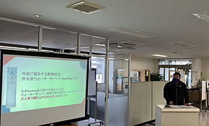 | クリクラ事業部の入社3年目の社員が担当しました。 アールエスエスグループでは入社してから3年間の研修計画を立てており、今回のプレゼンテーション発表会が研修の最終プログラムとなりました。 クリクラの新商材である浄水型サーバー「feel free」を既存ユーザー様に対してご案内する内容でした。商品の利便性やポイントを押さえていて分かりやすく、3ヵ年研修の集大成となる素晴らしい発表会となりました。 |