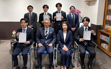 | 令和7年度入社予定の内定式が執り行われました。 内定式では、大久保社長より歓迎のご挨拶と内定証の授与が行われました。 その後の座談会では先輩社員と話が盛り上がったようで、良い交流の場となりました。 残り半年の学生生活を楽しんでもらい、4月には安心して入社していただきたいと思います。
